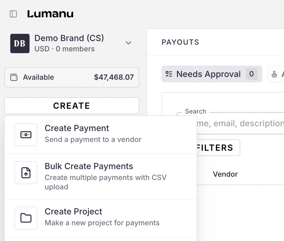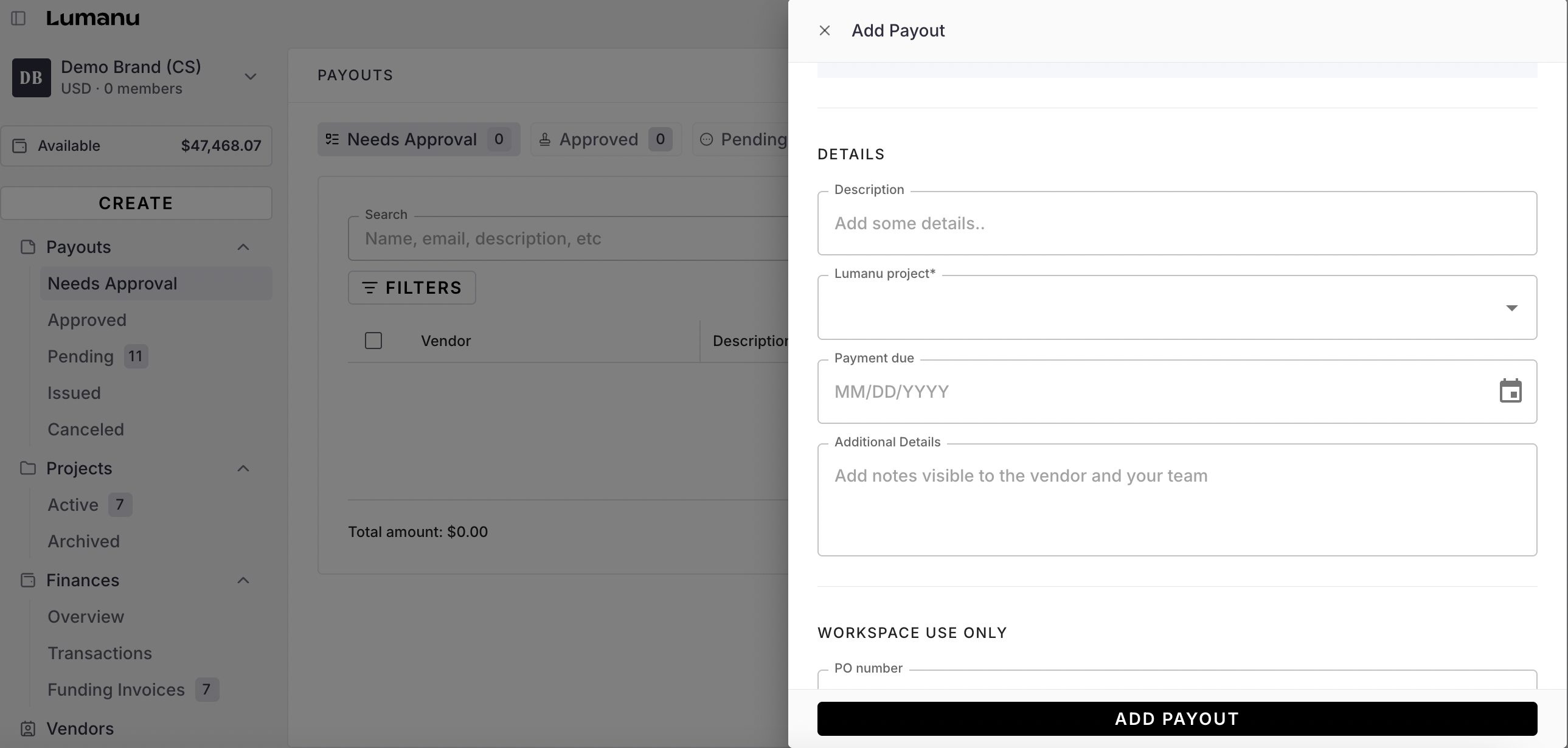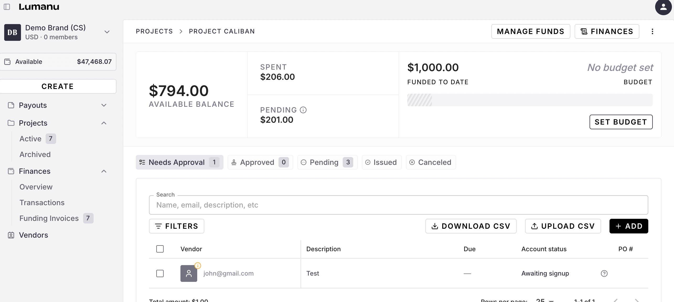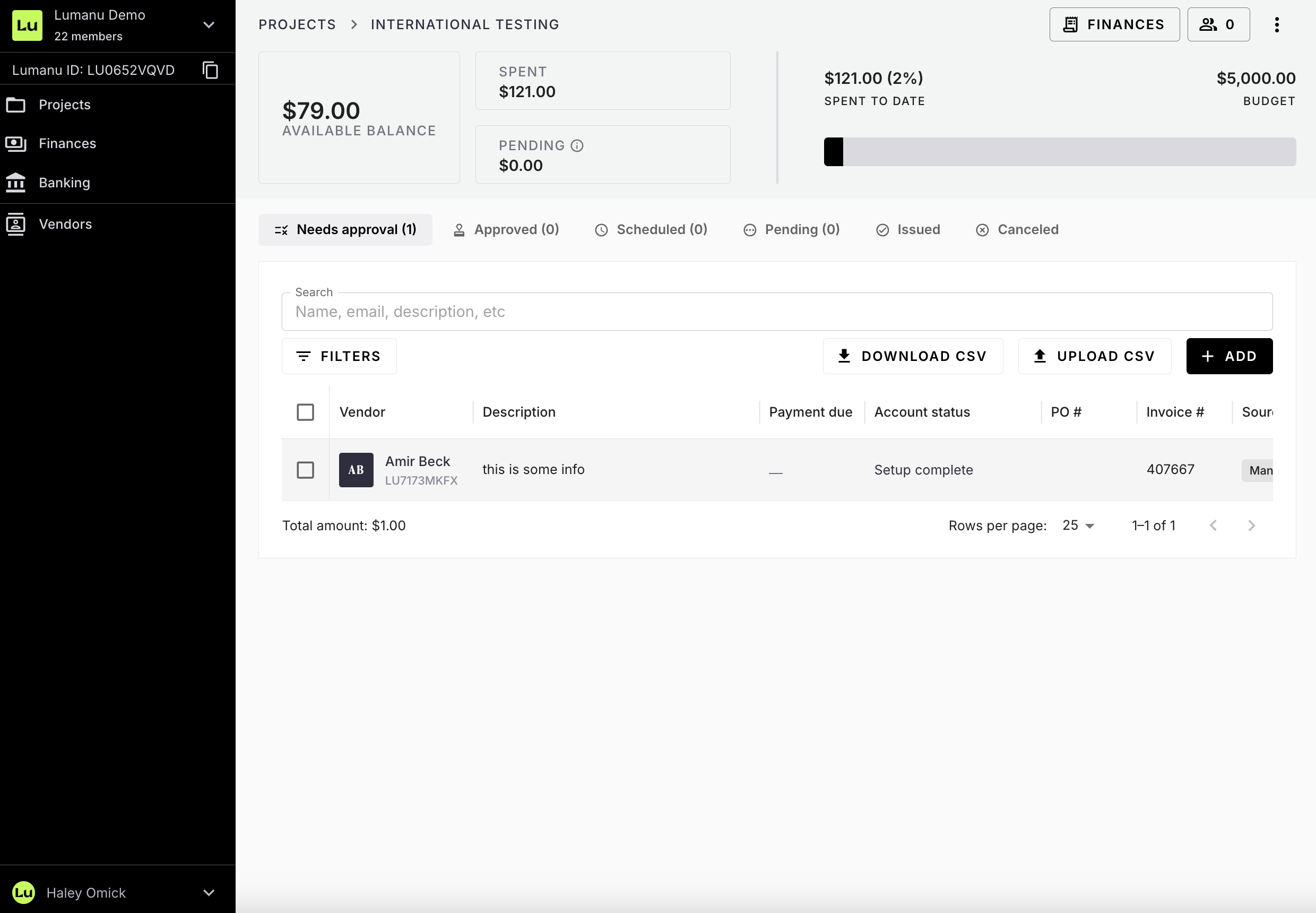 📣 If the vendor doesn’t populate when searching, you can create a new contact and they will be sent an invitation to join Lumanu.