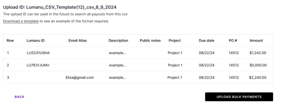 PO number and Dollar amount cannot be edited within the .csv upload window