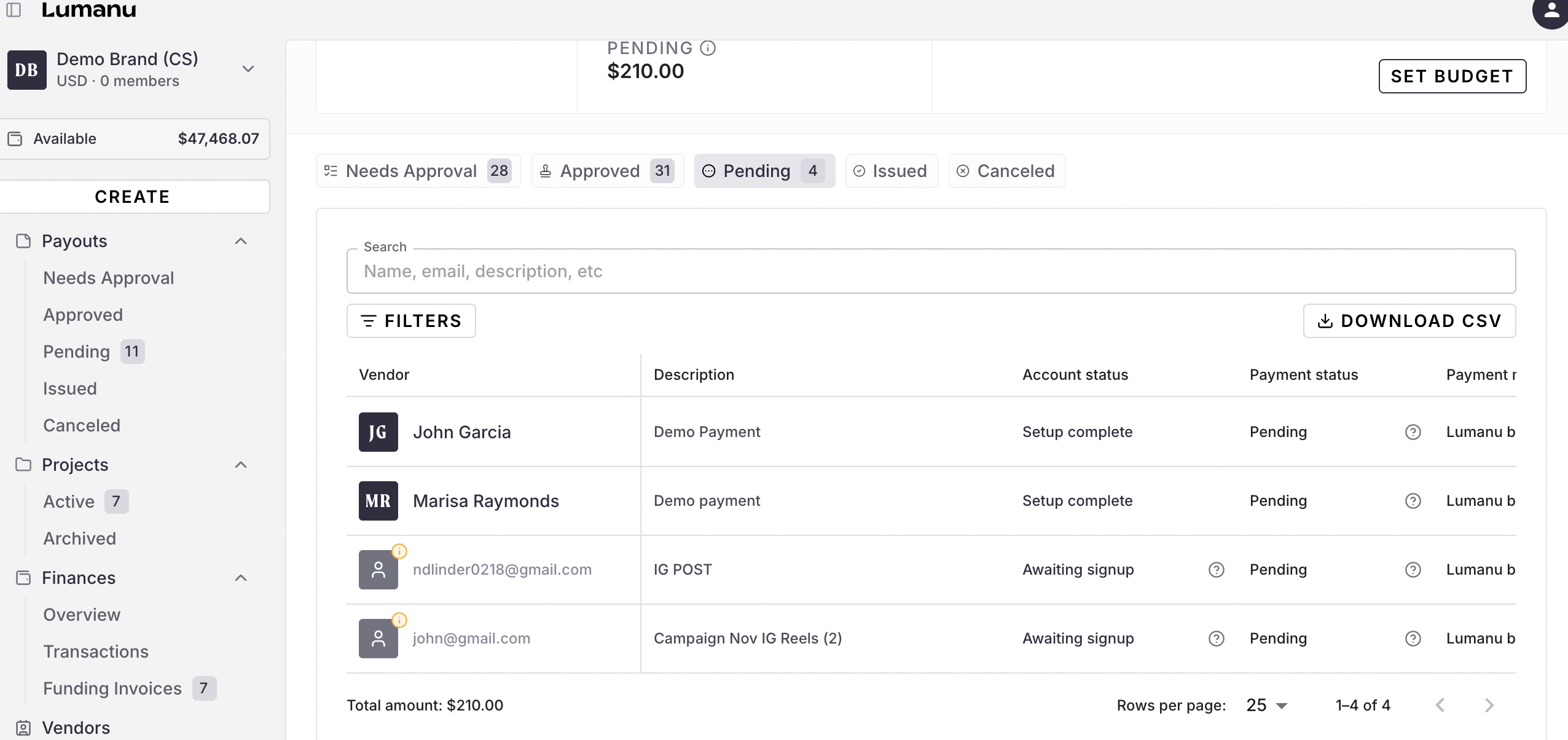 Lumanu will initiate the payout once the account is created / verification has been completed.