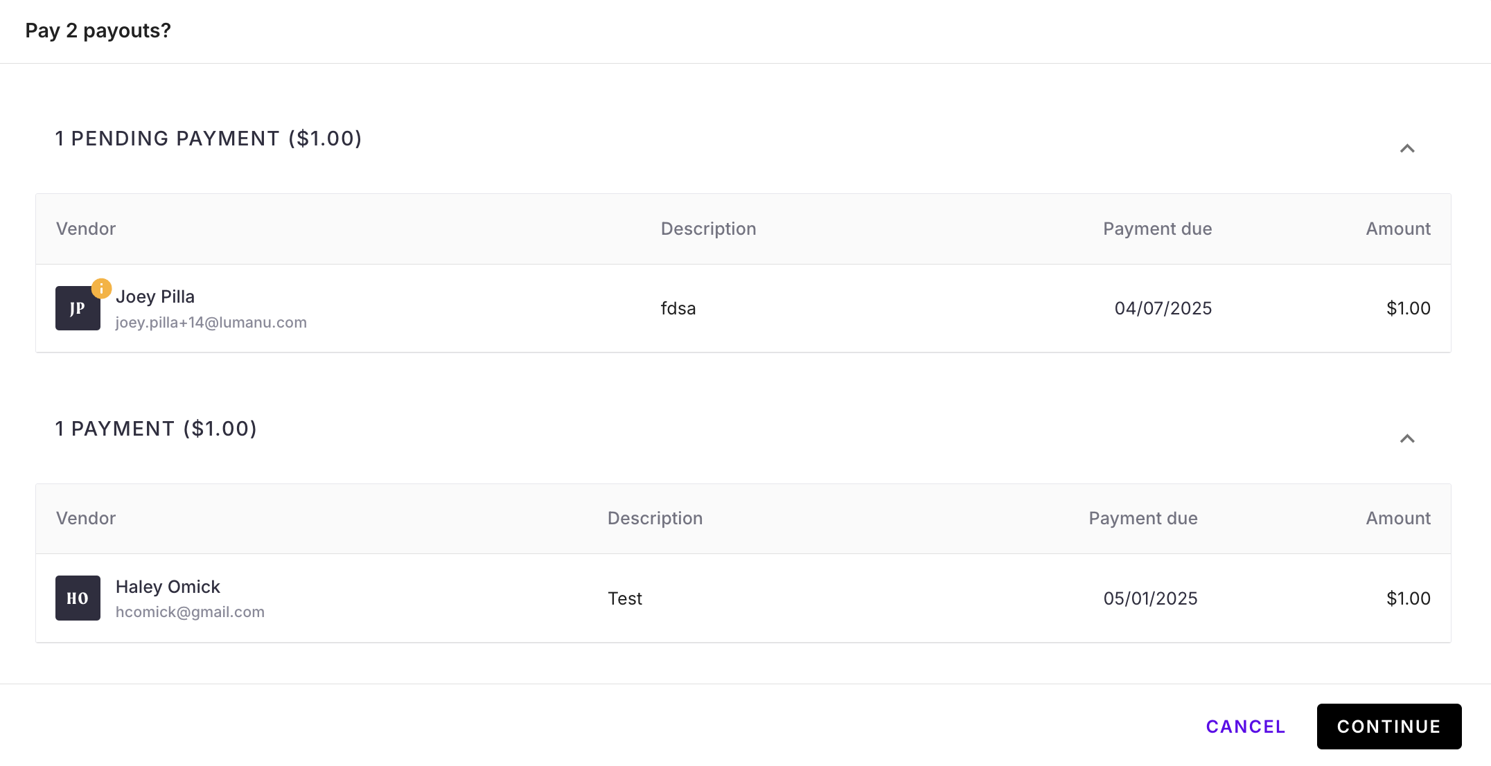 A confirmation modal will populate. Review the selected invoices and click Continue.