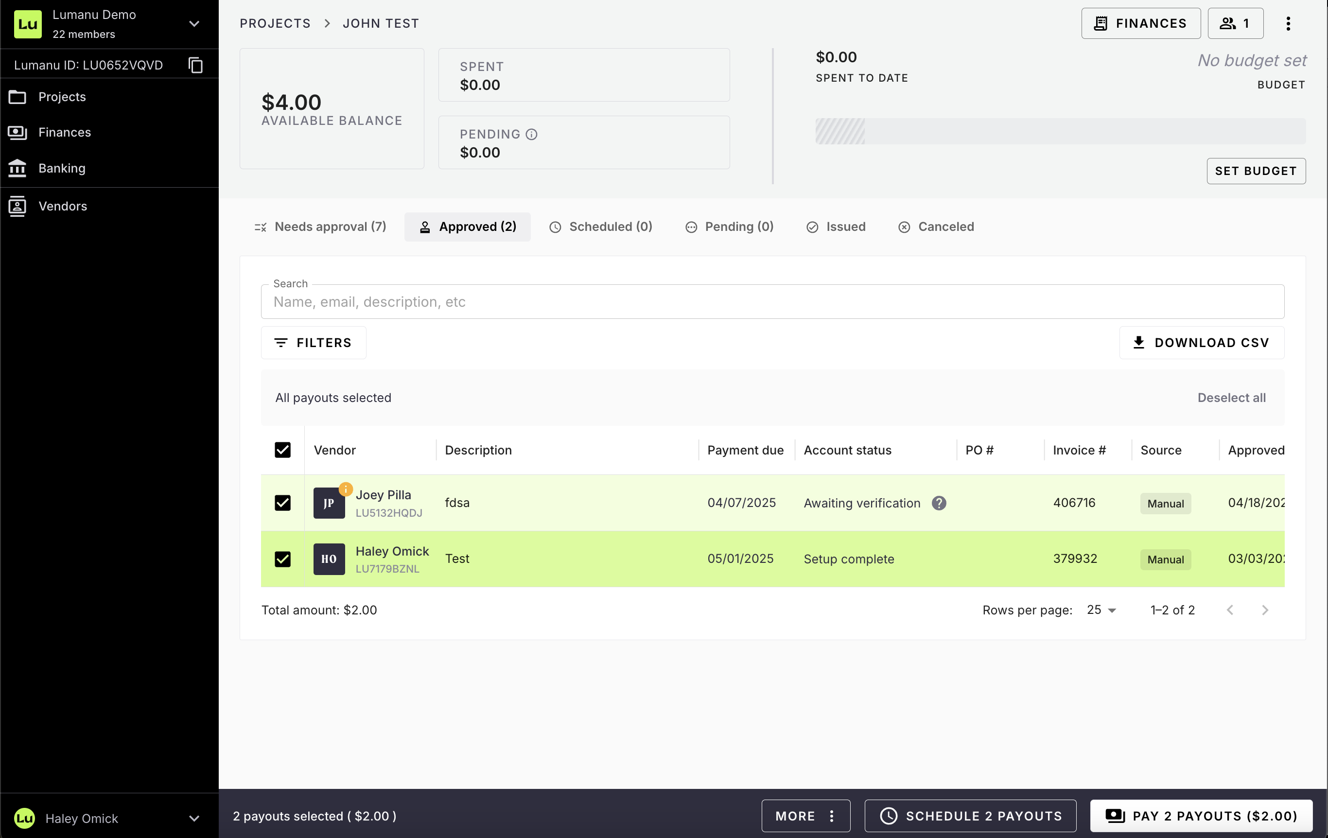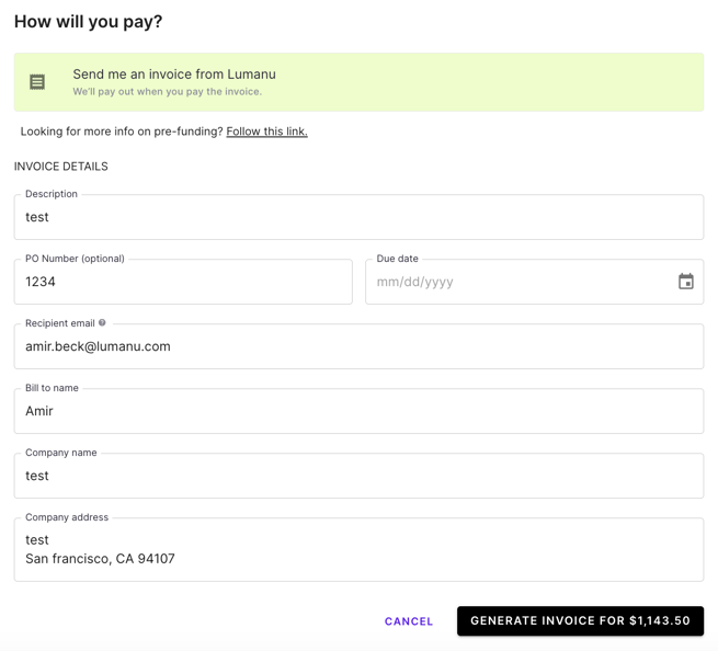 How to generate a Lumanu (funding) invoice for issuing payment: