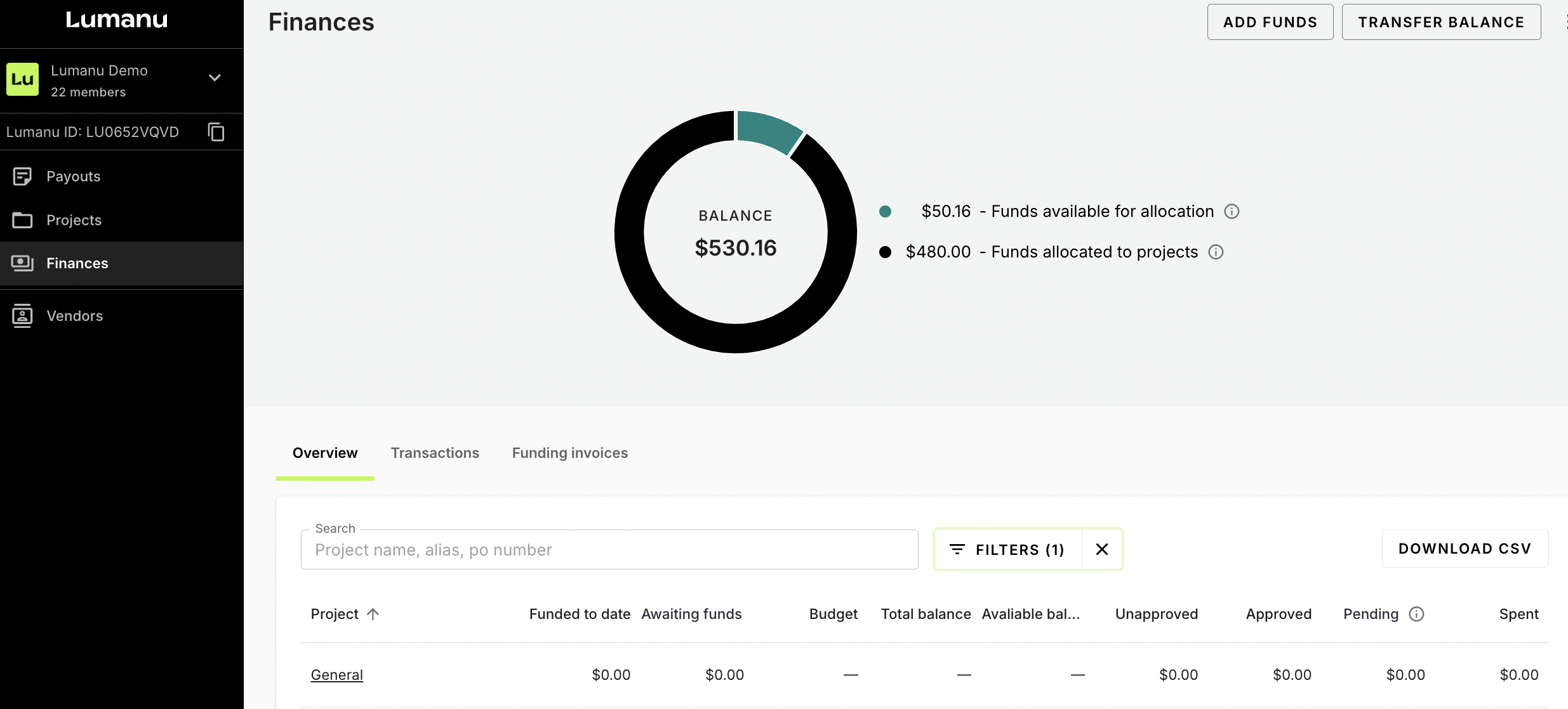 6. To track the status of your funding invoices, stay on the Finances screen and navigate under the Funding invoices tab.