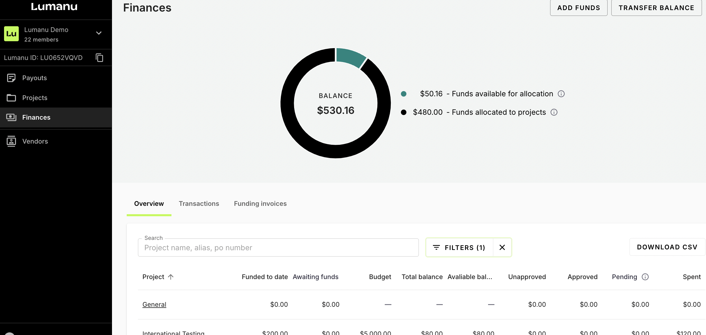 Get access to your funds faster. No need to depend on Lumanu's internal team to match the deposit to your account!