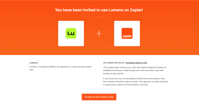 Lumanu's Zapier integration is invite only. To access the Lumanu app in Zapier, you must use the invite link below.