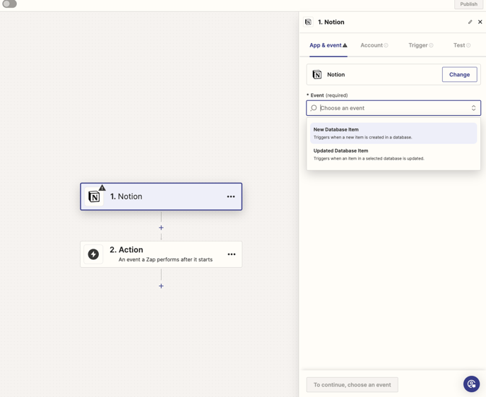 Create a new Zap. Under the trigger, search for the app you’d like to connect.