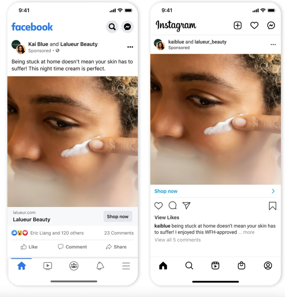Advertisers have more ad creation flexibility as they can create completely new ads or dark posts from the creator’s handle. Additionally, they’re able to boost more types of organic content such as Instagram Collab posts, @mentions, people tags, and product tags. Another benefit is that advertisers gain access to the influencer’s audience and can amplify existing posts to not only the creator’s existing audience, but also millions of other potential lookalike consumers.