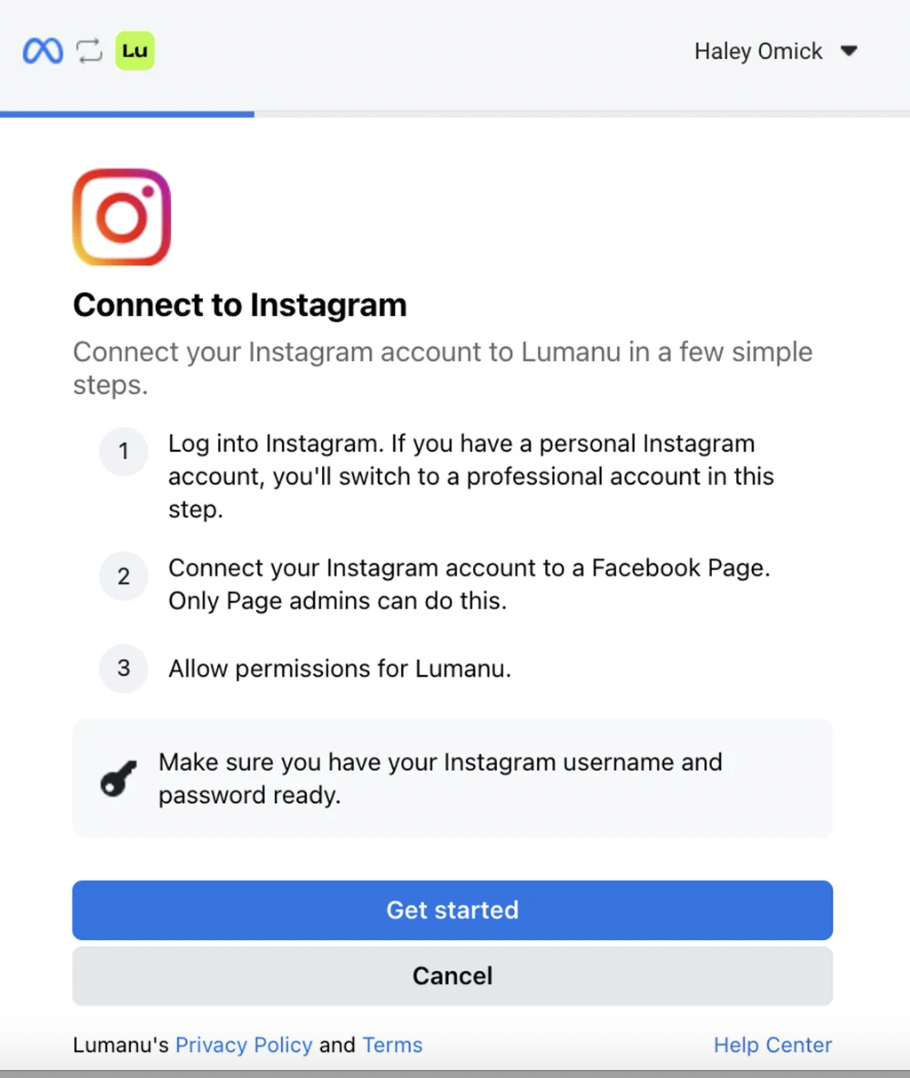 Identify the person who has access to your brand’s Instagram and Facebook accounts. This user does not need a Lumanu account - you can send them a link to set up this connection.