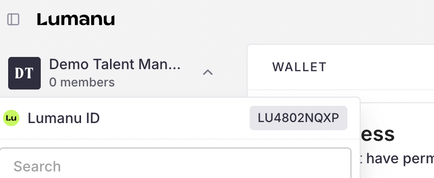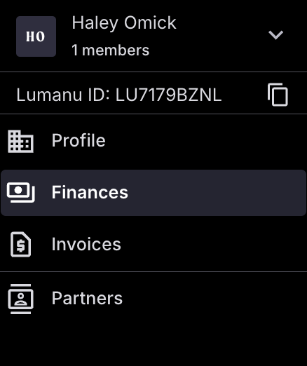 New vendors can easily access their account’s Lumanu ID within the navigation bar. Have your vendors copy and share their ID with your team to make sending payments to their account a breeze.