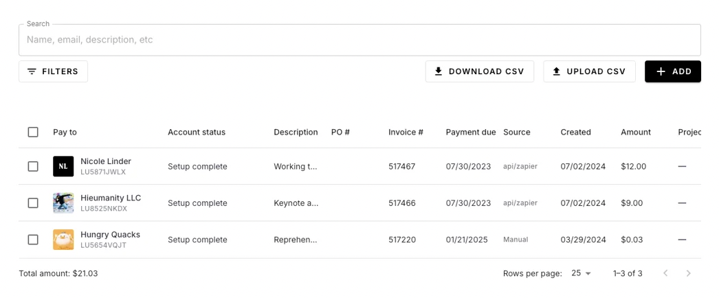 You can also download a .csv of your vendors within the Vendors Tab, which will provide the Lumanu IDs of your existing vendors. You then have the option of incorporating their Lumanu IDs into your CRM for future invoice uploads.