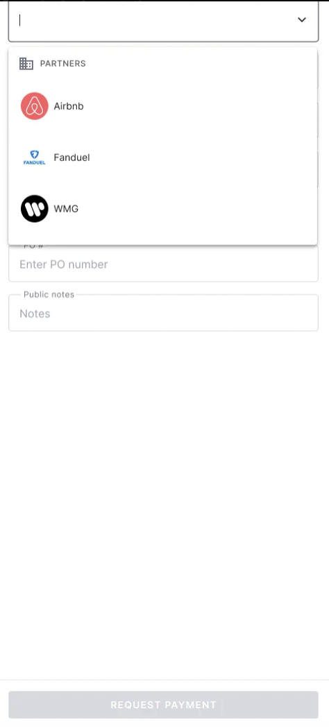 In an effort to make Lumanu as secure as possible, other organizations can only request payment from your team after they are added as a partner. A partner is defined as a company or creator that is an approved connection with your Lumanu team.