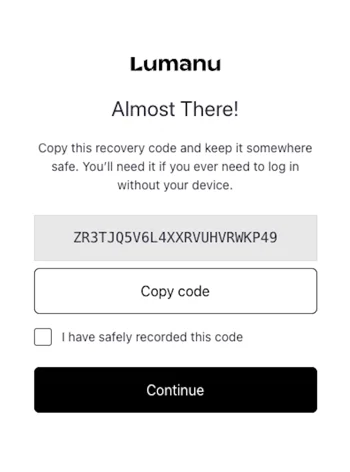 A back-up recovery code will be auto-generated for you.