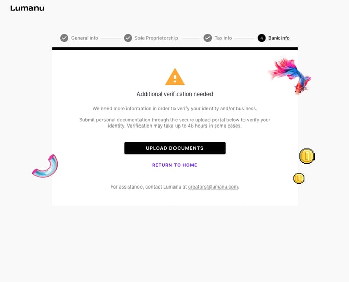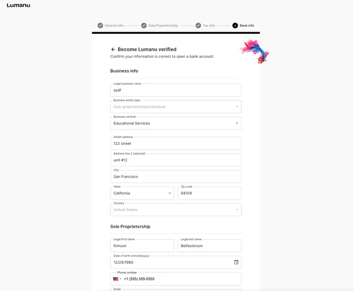 Lumanu fully verified your identity and business identity, providing companies with confidence they're paying the right person
