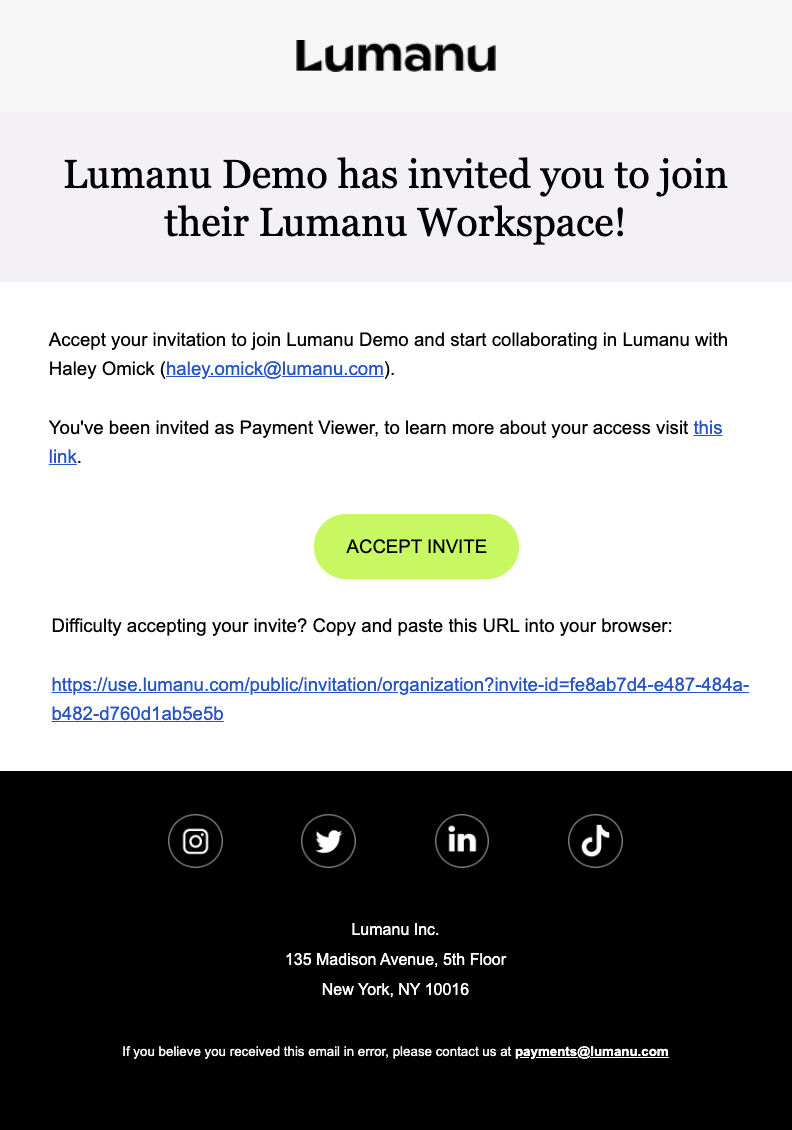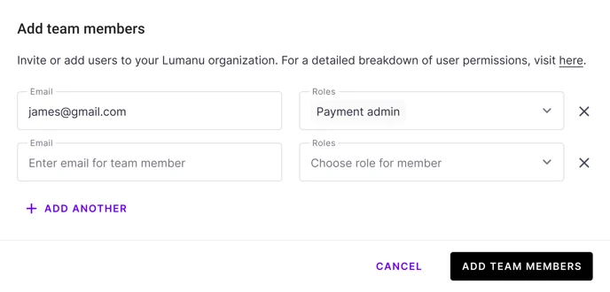When selecting a role, the Lumanu app will provide you with a short summary of the permissions tied to each one. For full details, refer to the role chart image or reach out if you need guidance on assigning roles.