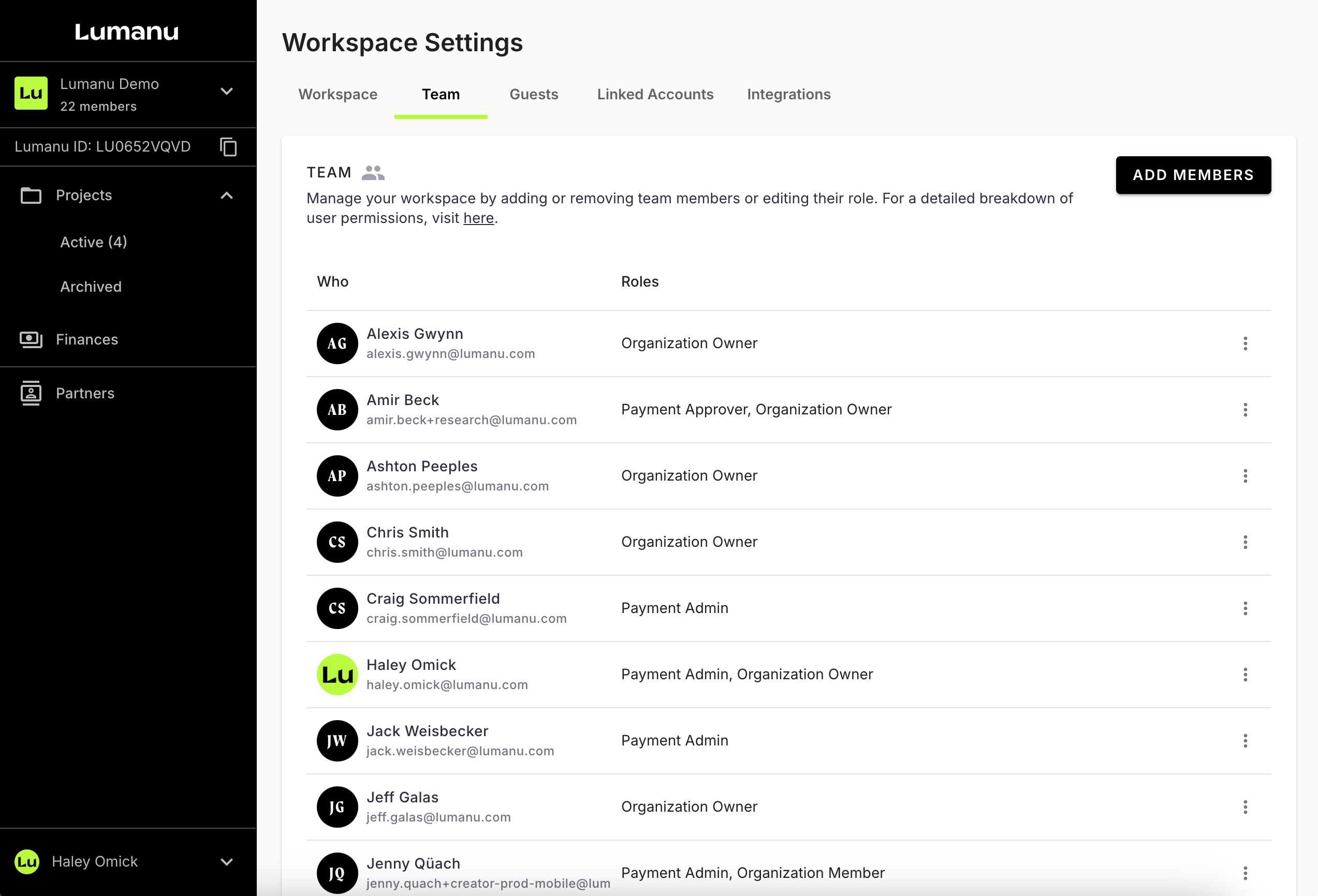 To collaborate effectively, start by adding your team members to Lumanu. You can assign different roles with specific permissions, allowing you to manage your account securely.