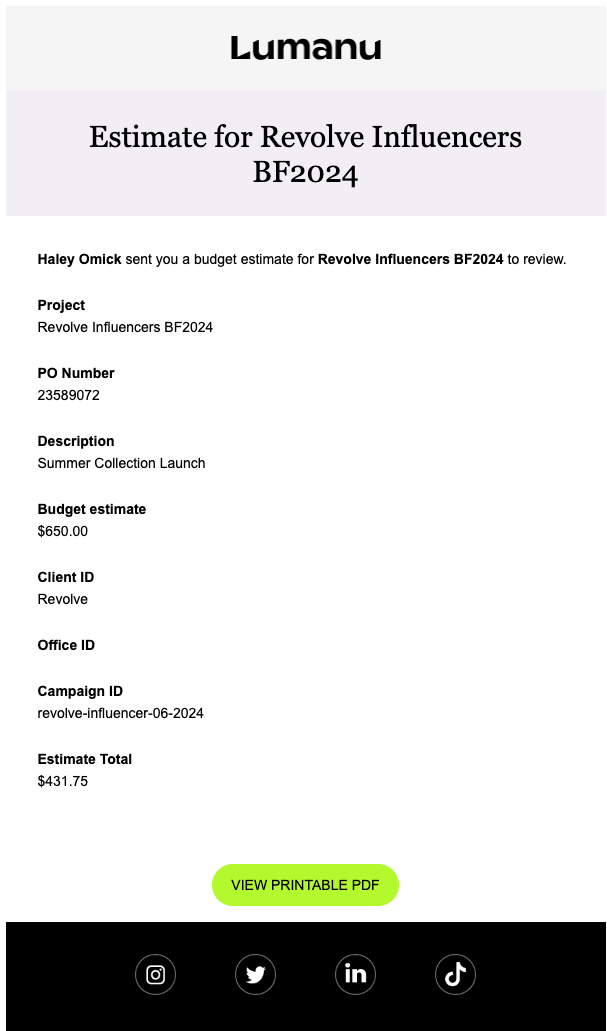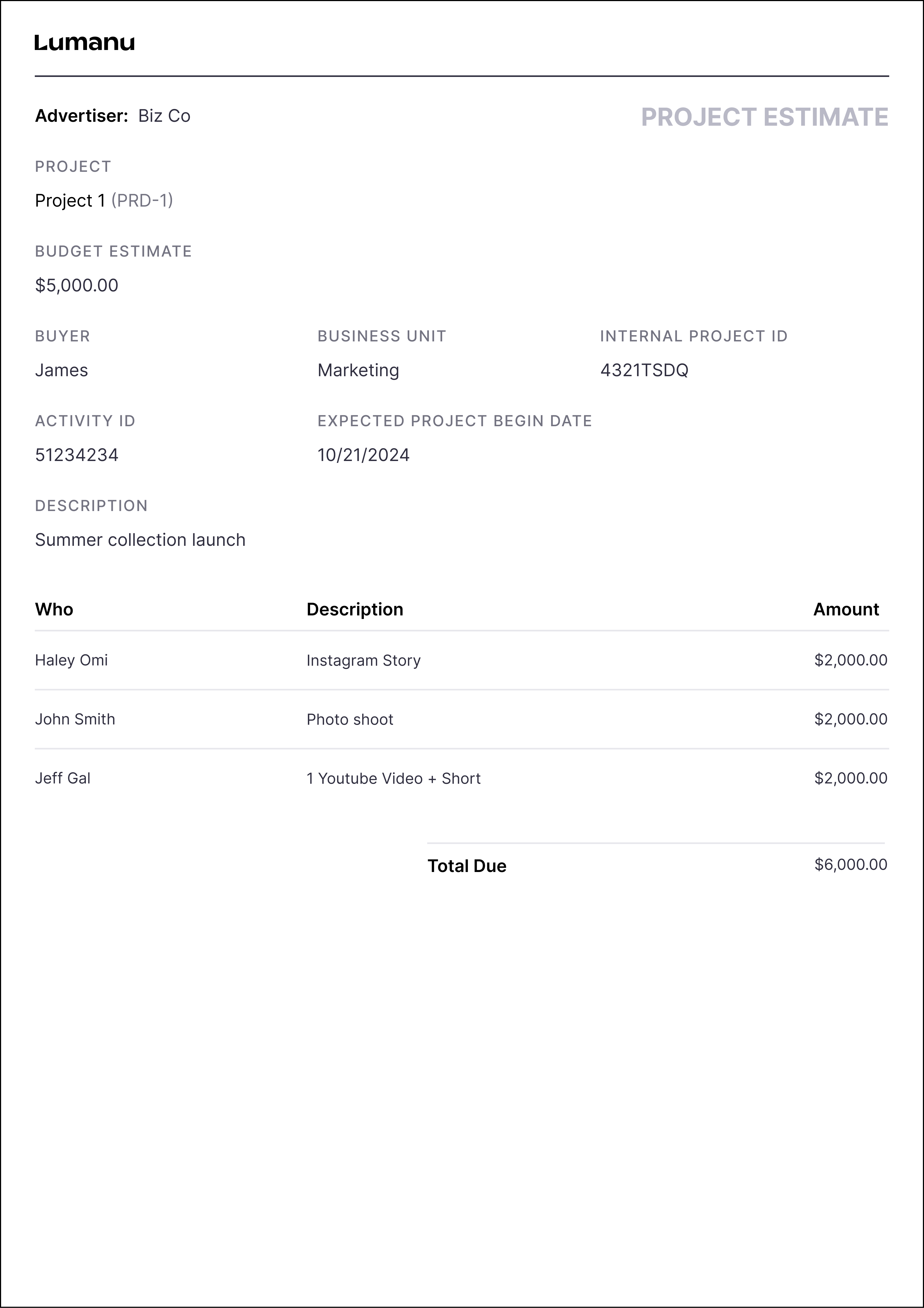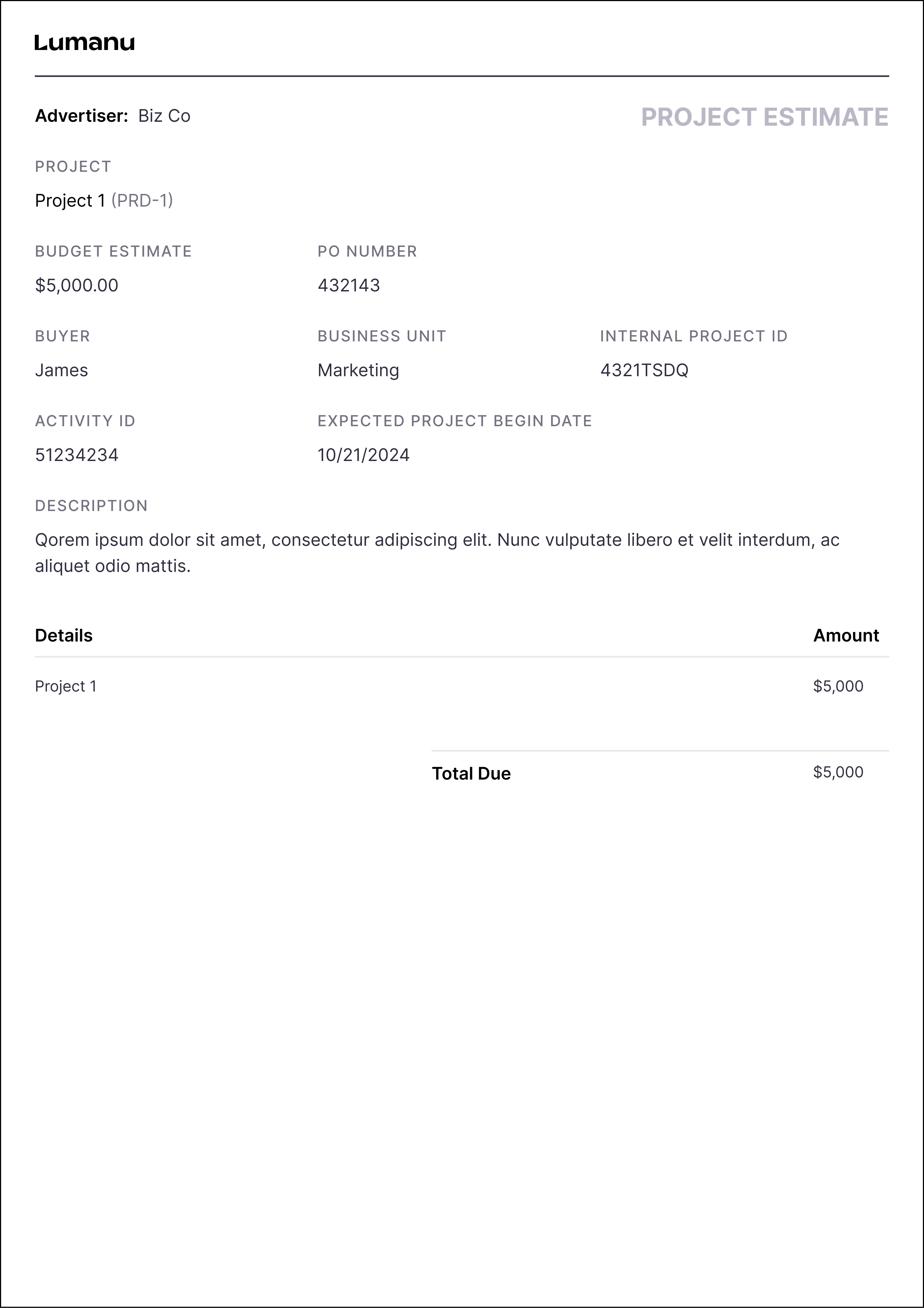 Project estimates are an essential planning tool that help companies evaluate the anticipated costs of a specific marketing initiative before proceeding. By calculating a project estimate, teams can assess if the projected budget aligns with company goals and resource availability.