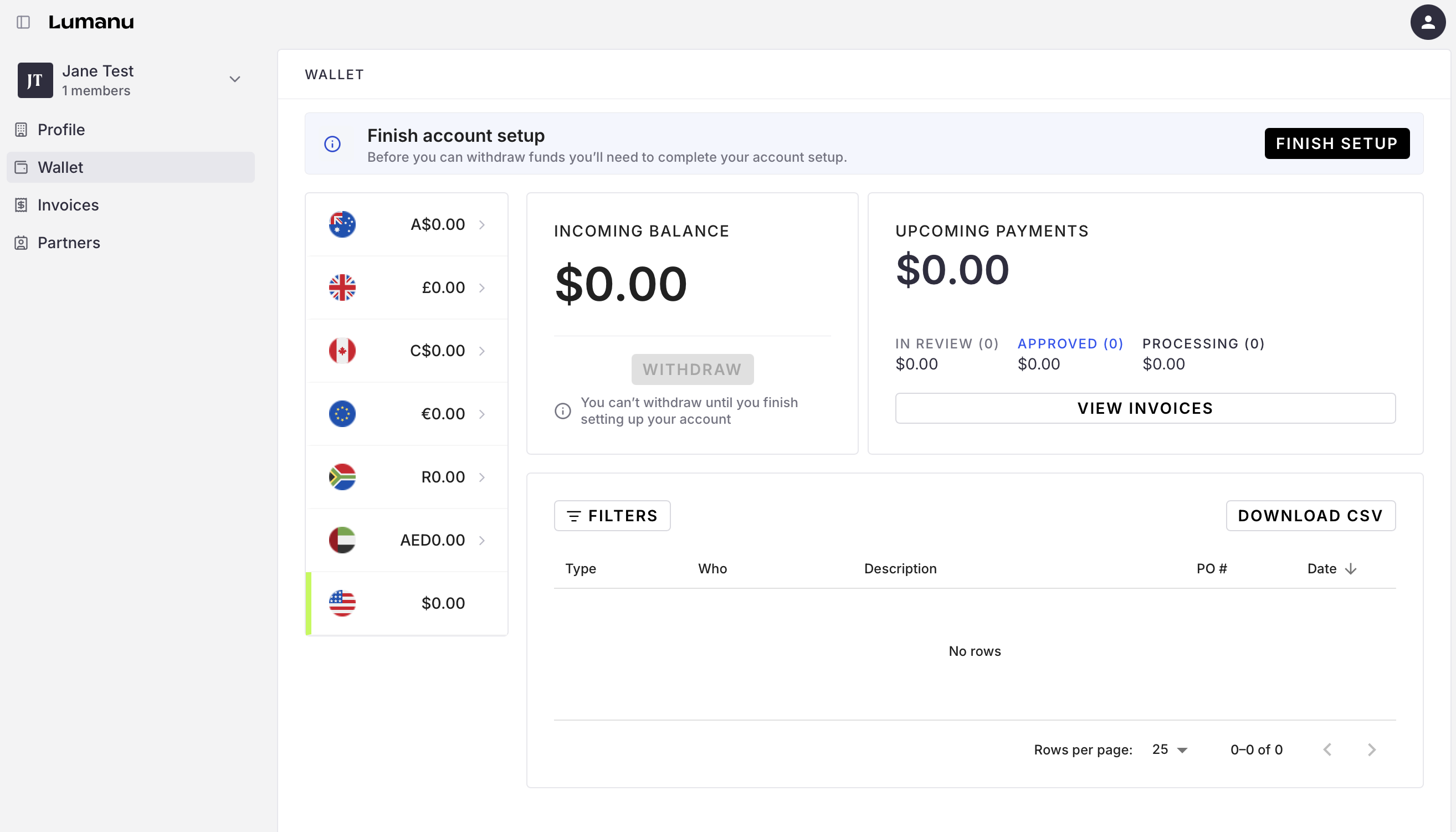 Once verification is complete and your tax information is confirmed, you will be able to transfer your funds out of your Lumanu wallet to your bank, debit card, or PayPal account.