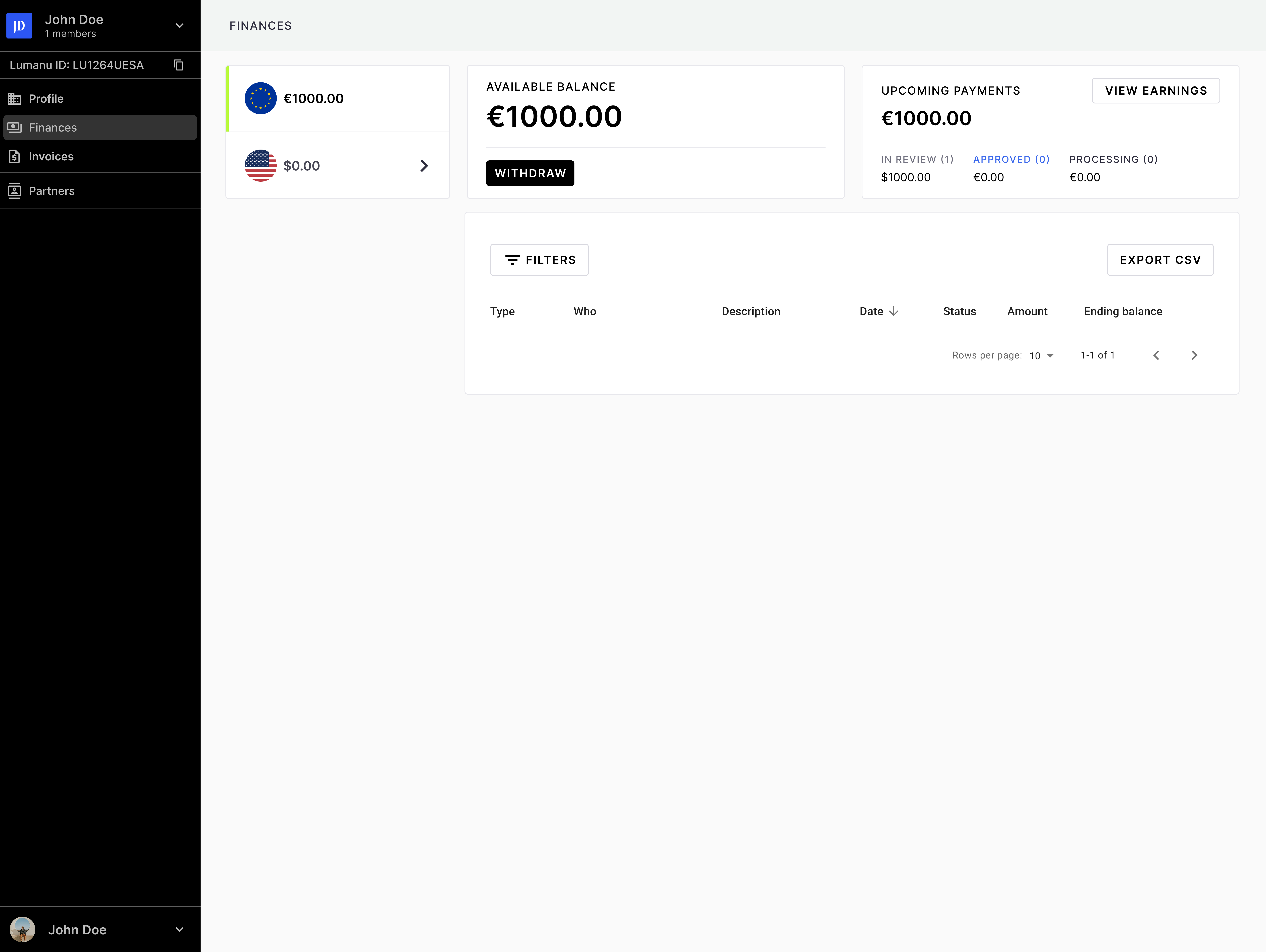 To withdrawal your funds, you must submit your tax information and verify your identity/business. To do so, log-in to your Lumanu account and navigate under Settings -> Taxes.
