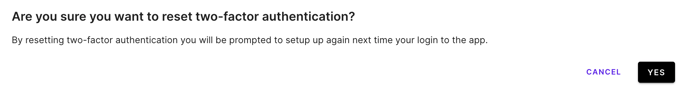 A confirmation modal will populate confirming you'd like to reset 2FA. Click Yes.
