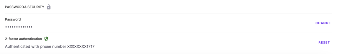 Under Passwords & Security, click the RESET button next to 2-factor authentication
