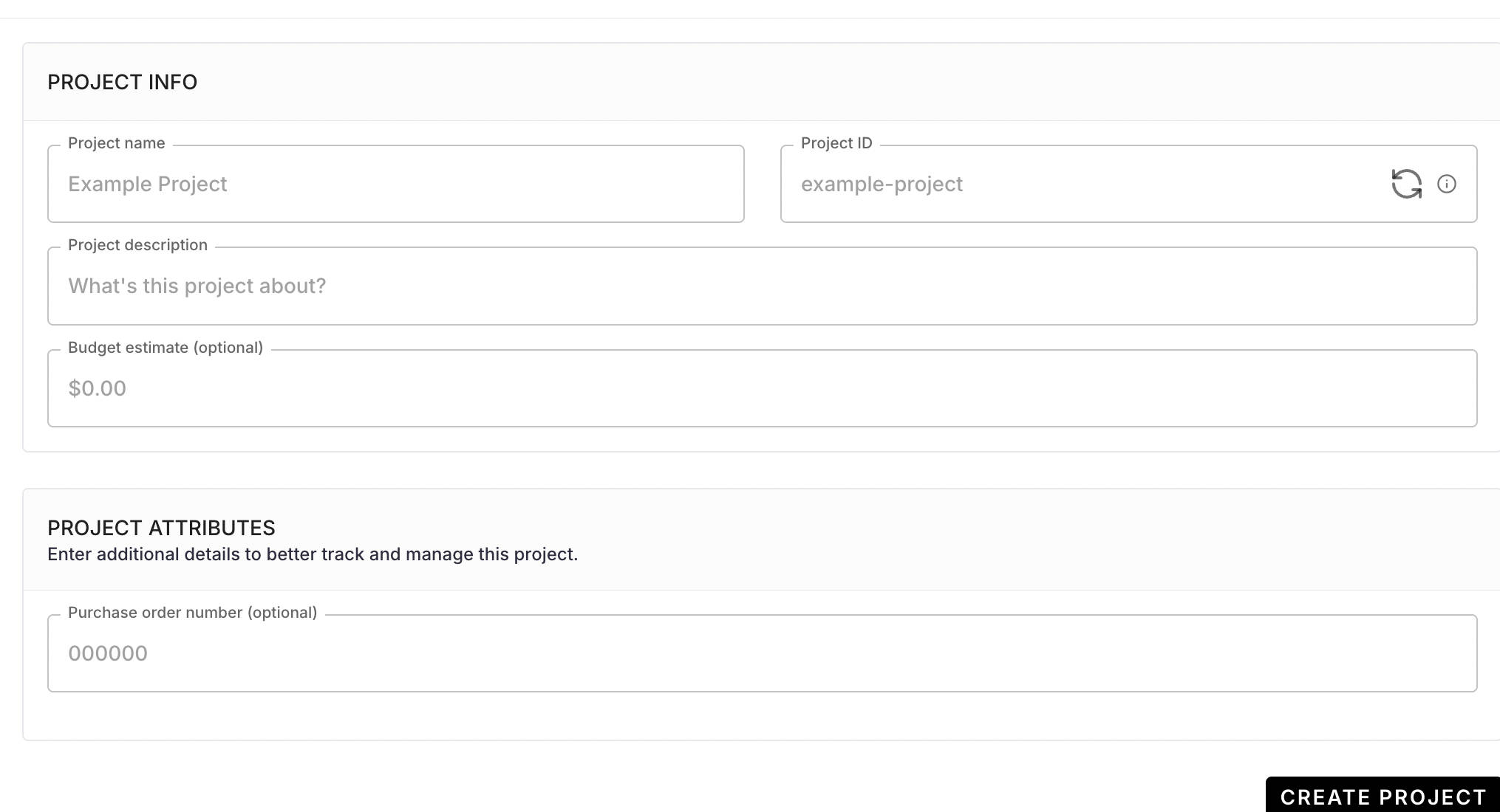 Project Attributes are customizable data fields that help you add more context and detail to each Project. You can track important details that align with your internal processes, making it easier to manage and report. These fields are optional.