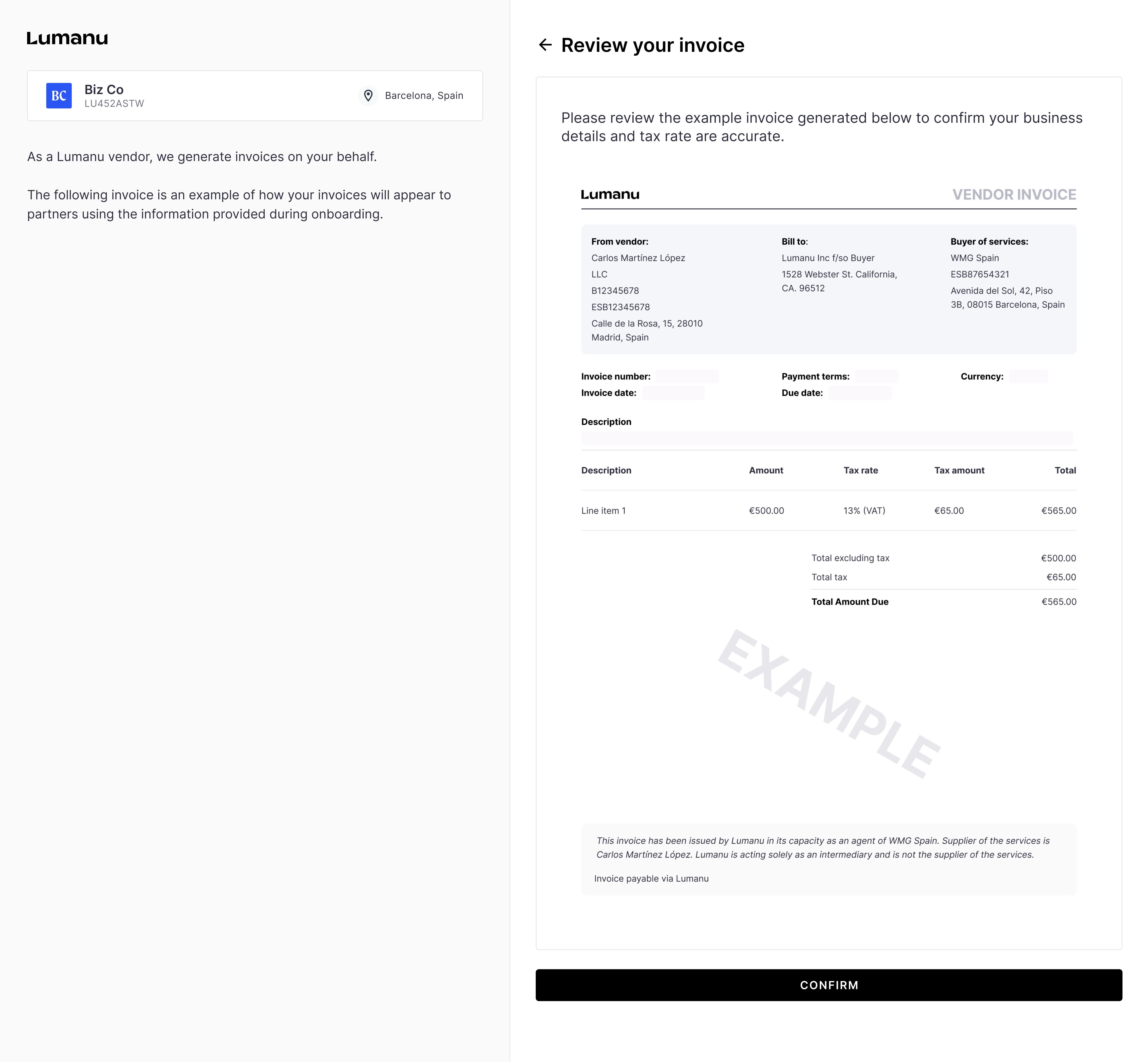If you’ve already submitted tax info and are registered for taxes, Lumanu will generate an estimated tax rate for you to confirm.
